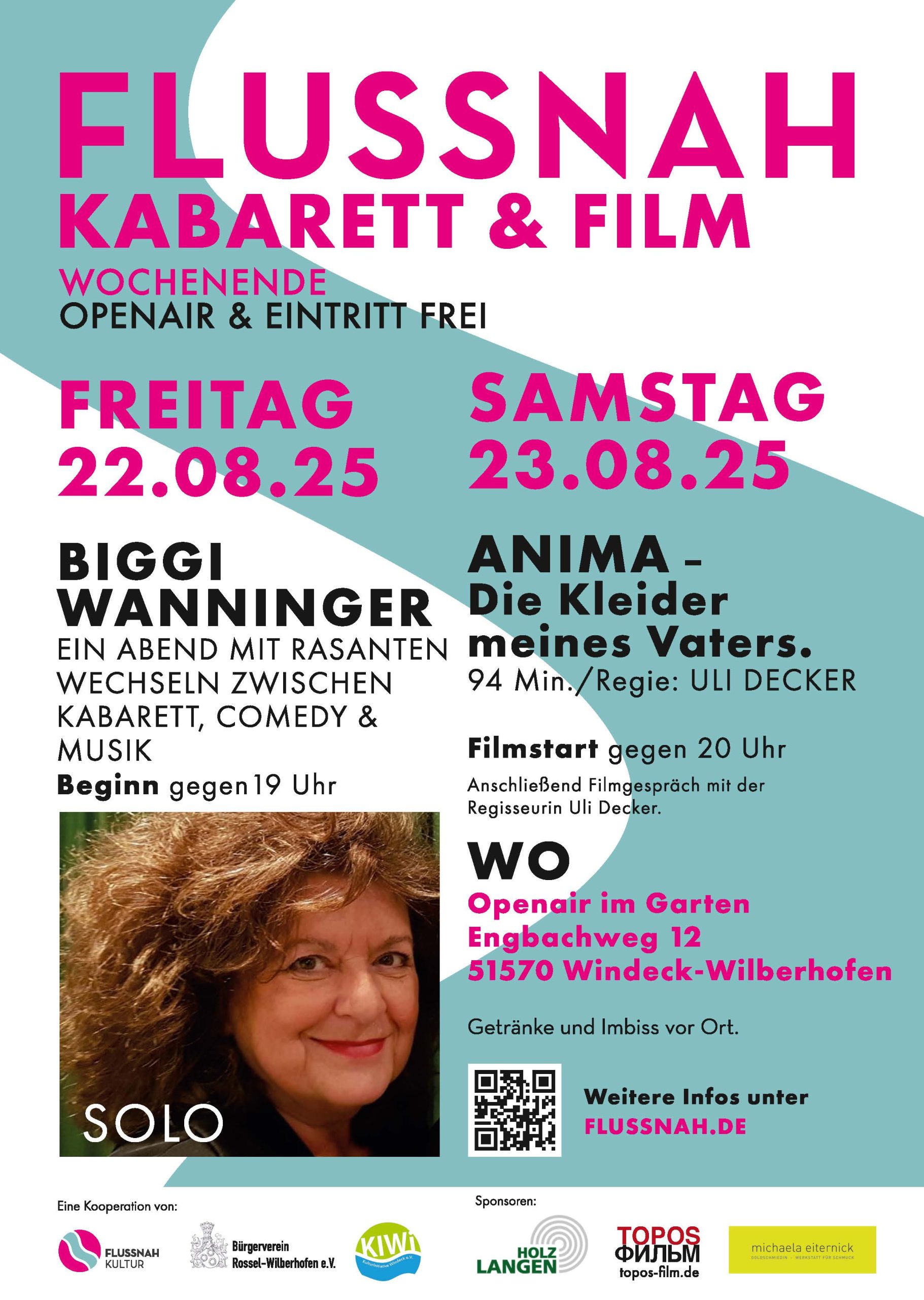 Ich hatte die große Ehre und das Vergnügen, meinen Film „ANIMA – die Kleider meines Vaters“ in Wilberhofen bei „Flussnah 2025“ präsentieren zu dürfen. Für mich als Filmemacherin sind gerade Orte, an denen Menschen unterschiedlichster Herkunft und Ausrichtung zusammenkommen, interessant – und genau so ein Ort ist „Flussnah“. Hier trifft sich die Nachbarschaft aus den umliegenden Dörfern im bergischen Land und Kulturinteressierte reisen aus Köln an. Alt und Jung haben Teil am Gelingen der Open Air Veranstaltung – vom 10-jährigen Jungen, der seine eigene Popcornmaschine mitgebracht hat, um für authentische Kinoatmosphäre zu sorgen bis zum Nachbarn, der zu später Stunde selbstgemachten Likör ausschenkt. Es ist ein Fest!